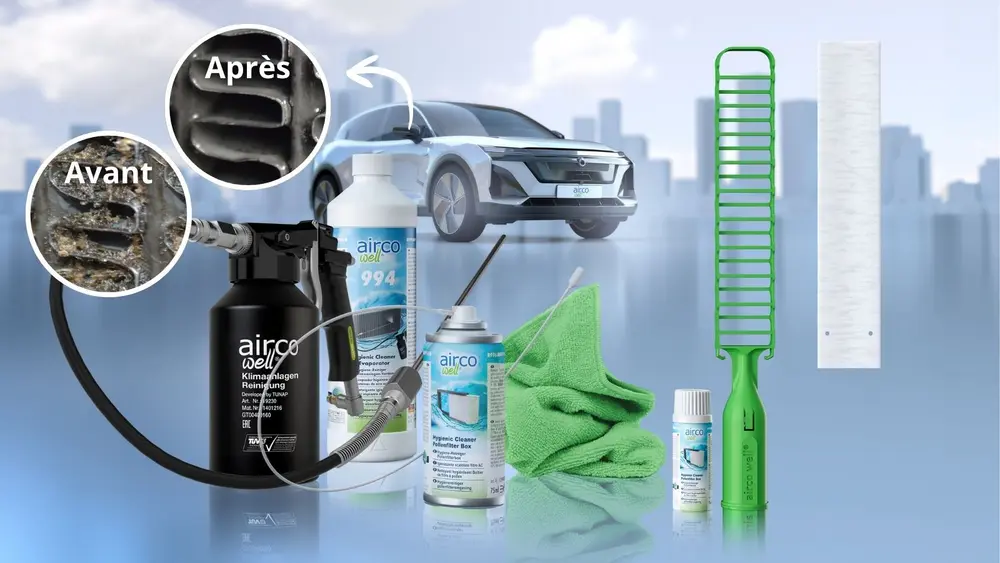 Les journées plus courtes et plus froides impliquent que le chauffage de la voiture tourne à plein régime. En hiver, vos clients souhaitent profiter d'un air chaud et sain, sans odeurs de moisi, ni de vitres embuées. Le secret ? Un nettoyage professionnel de la climatisation avec airco well®.