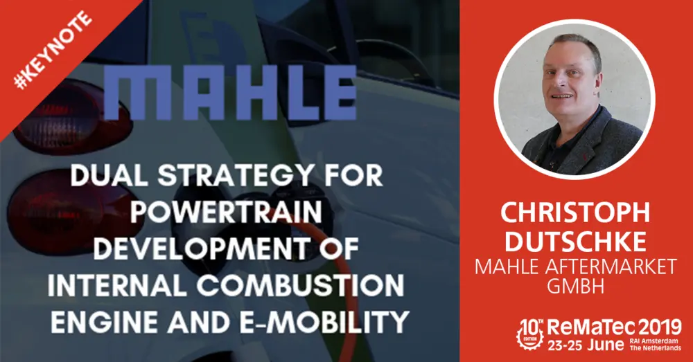 Op ReMaTec 2019, gehouden van 23 tot 25 juni in RAI Amsterdam, neemt Christoph Dutschke ons mee in de visie van MAHLE over de toekomst van verbrandingsmotoren, hybridevoertuigen, elektrische voertuigen (EV’s) en waterstofaandrijving. Met een gratis workshop voor revisiespecialisten en technici over schadepreventie aan motoren tijdens onderhoud, service en installatie, neemt MAHLE haar visie mee naar de praktijk op de ReMaTec-beursvloer.