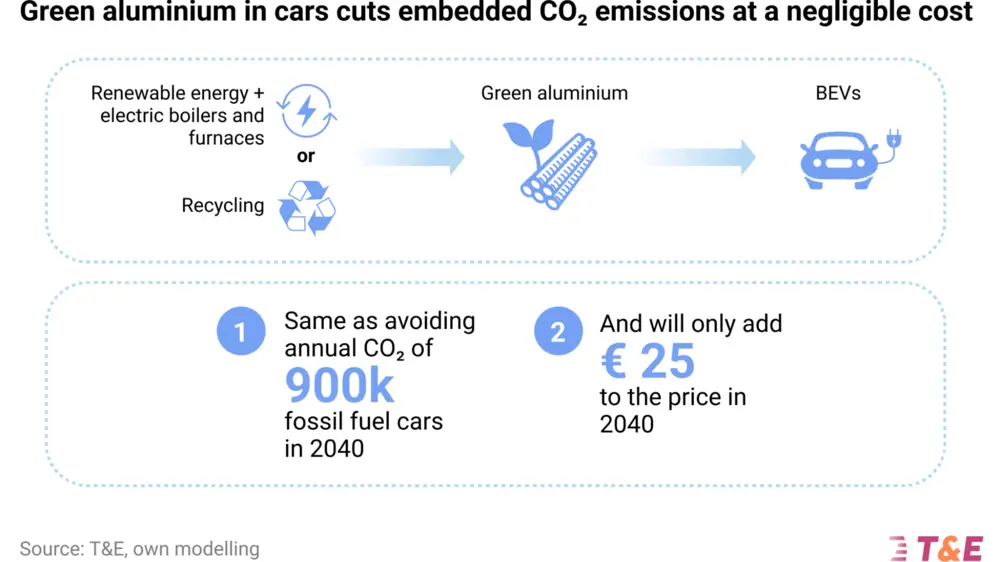 Een nieuwe T&E-studie stelt dat groen aluminium de CO2-voetafdruk van Europese EV’s fors kan verlagen voor amper € 25 per auto. De analyse toont echter ook structurele risico’s: importafhankelijkheid, gesloten smelters en technologie die nog niet commercieel is. Wat betekent dat voor de sector?